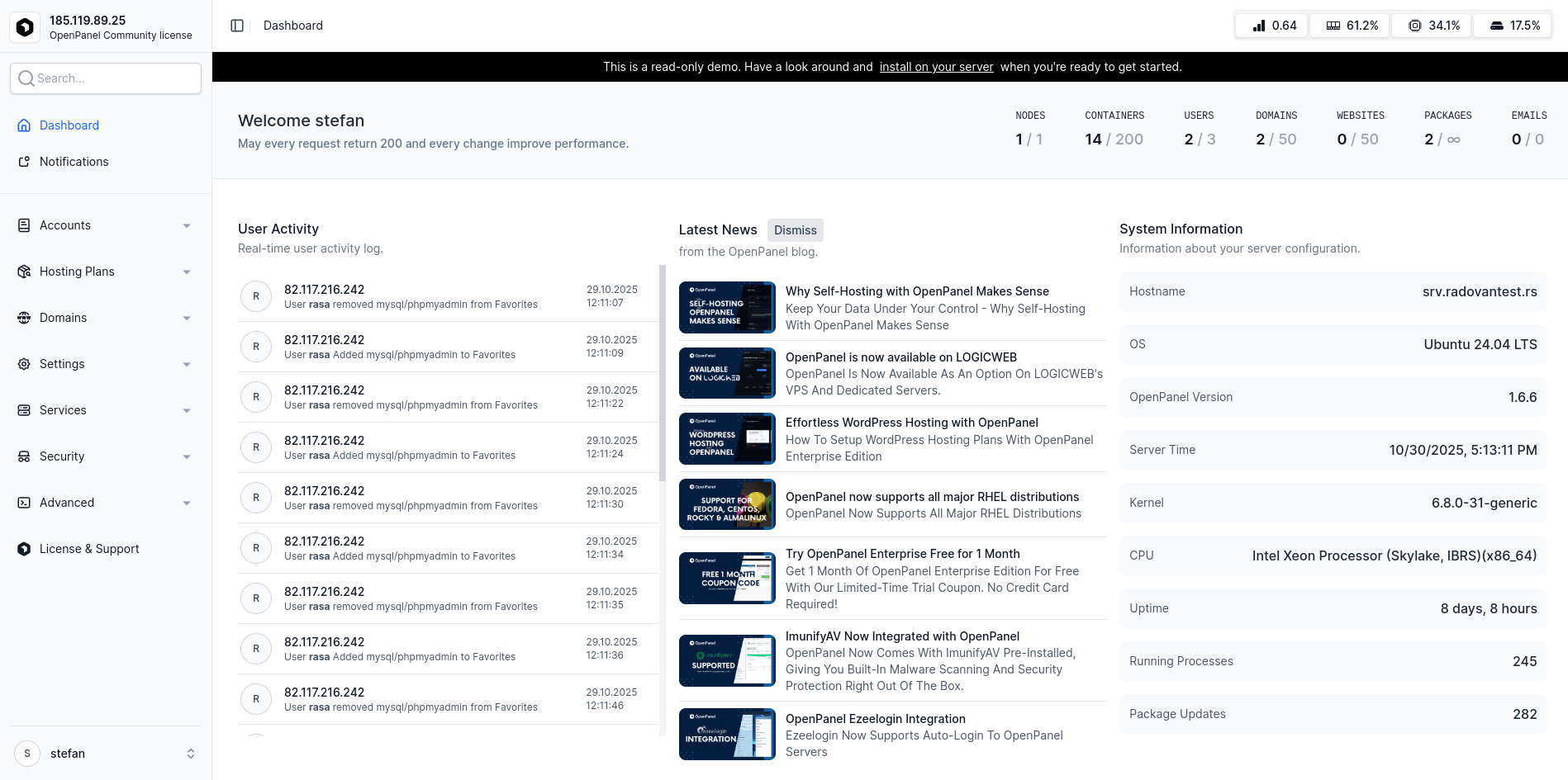 - 150+ actions inside OpenPanel UI are now recorded in user's activity log.