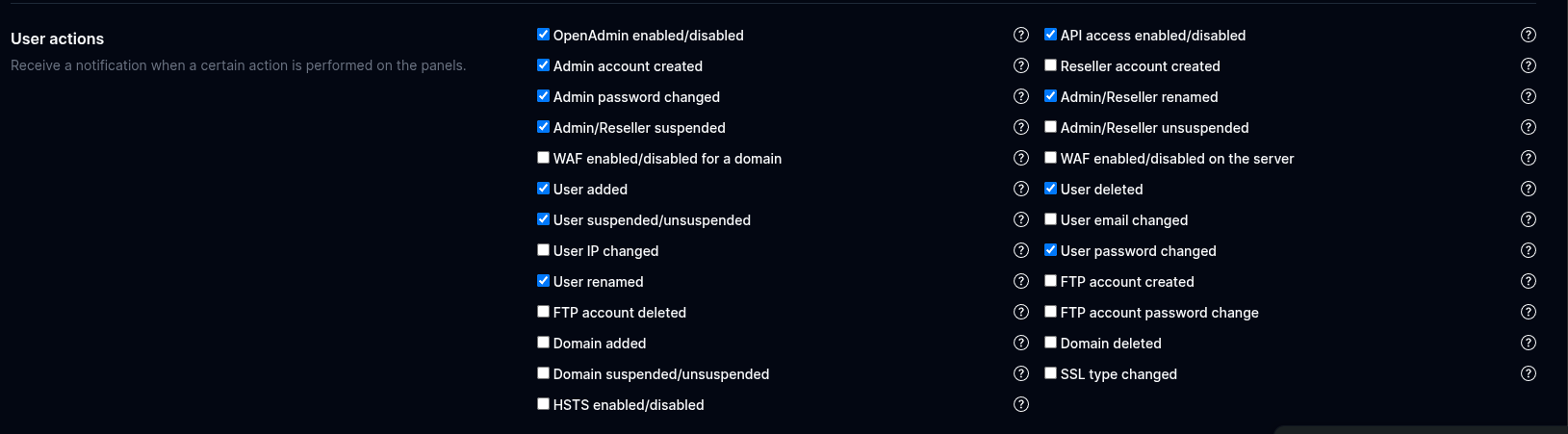 - Added 30+ user-actions on OpenAdmin > Settings > Notifications page.