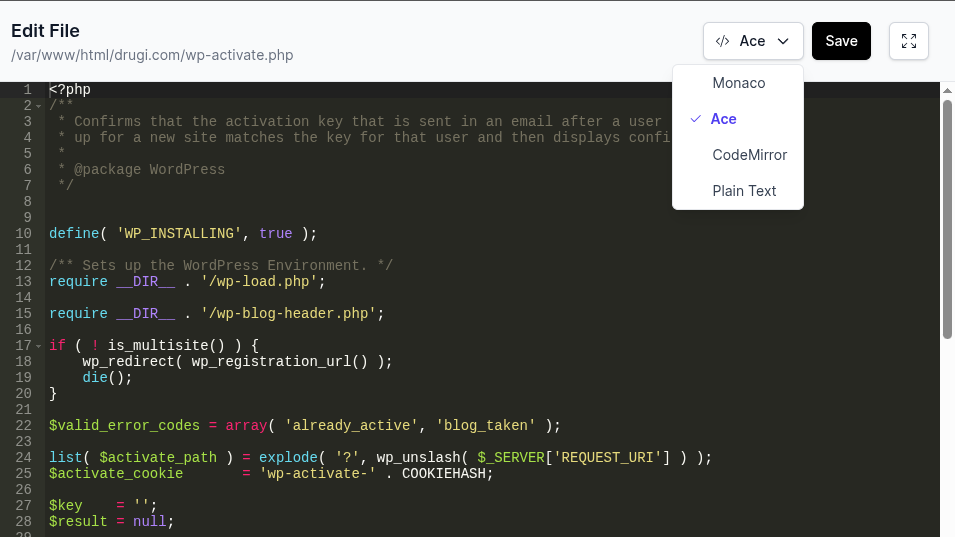 - User can now select desired code editor when editing files: Monaco (default), Ace, CodeMirror or Plain Text.