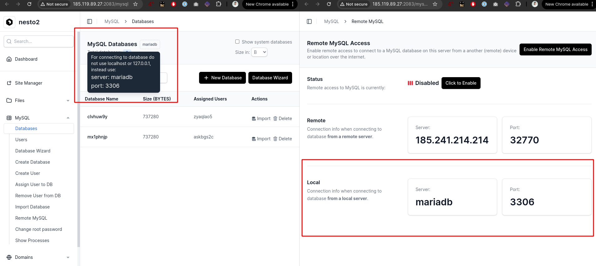 - MySQL connection details are now displayed in both Databases and Remote MySQL pages.